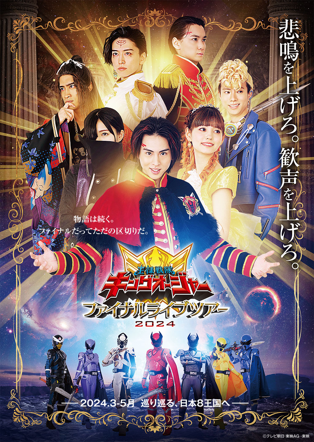 ツアー最終日となる、5月19日(日)大阪公演は第2幕「トーク オブ KINGS & ロッKING フェスティバル」を豪華版とし てお贈りする、スペシャルバージョンでの公演となります。